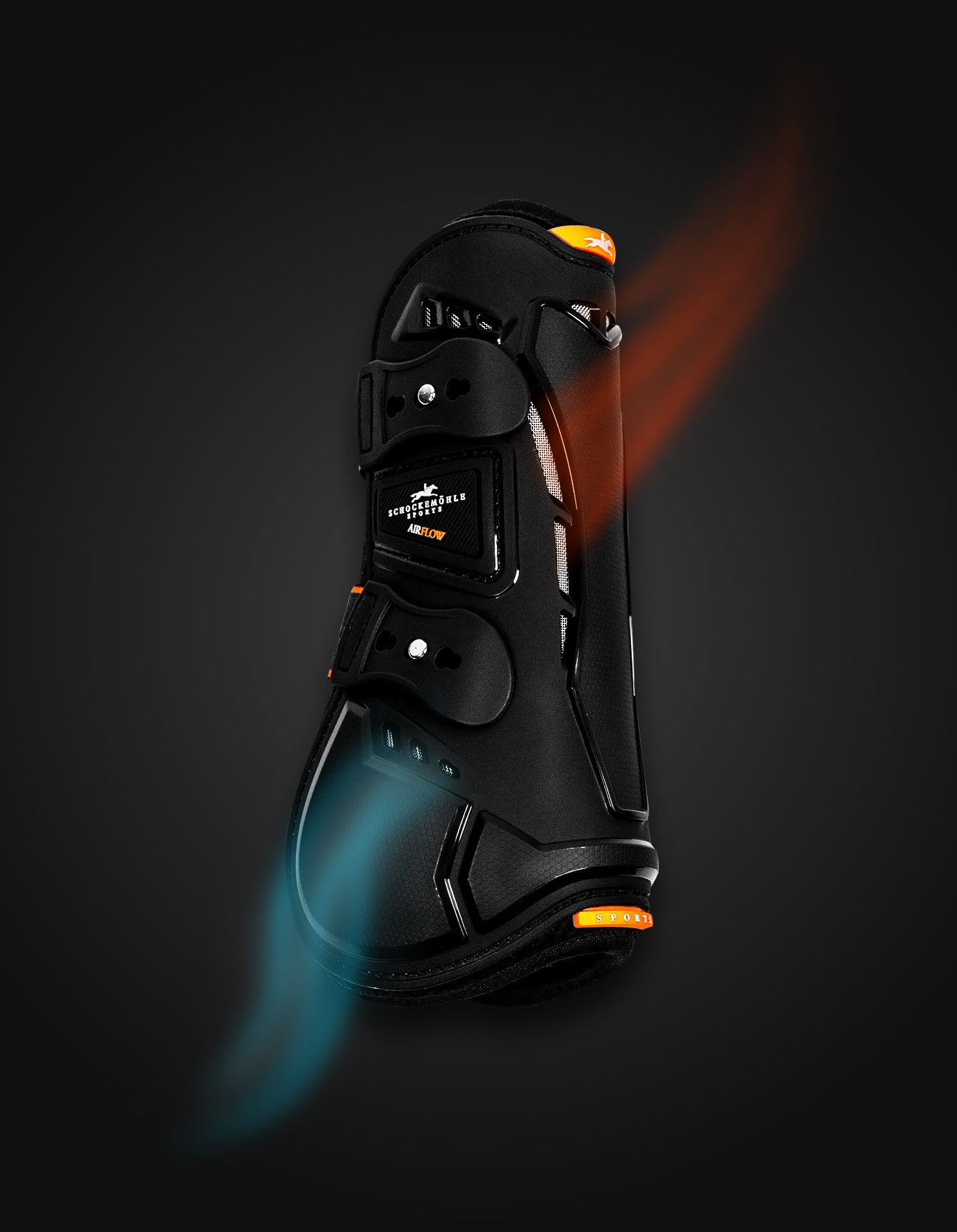 Die SP Air Flow Champion Tendon Boots von Schockemöhle Sports bieten maximalen Schutz für die Pferdebeine und verhindern gleichzeitig einen Hitzestau. Dank der innovativen Belüftungsschlitze wird die Luft optimal um das Pferdebein zirkuliert: Frische Luft strömt durch die seitlichen und rückwärtigen Öffnungen ein, verteilt sich um die Sehnen und entweicht durch die oberen Abzugsöffnungen. Dieses Belüftungssystem sorgt für eine effektive Wärmeableitung und beugt Überhitzung vor.