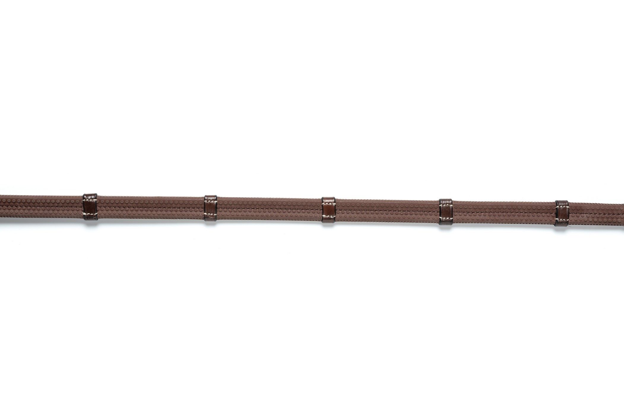 Die Trust Gummizügel Maastricht bieten eine ideale Kombination aus rutschfestem Grip und eleganter Optik. Die Innenseite der Zügel ist mit Gummi versehen, was für hervorragenden Halt und Kontrolle sorgt, während die Außenseite aus hochwertigem Leder besteht, das eine stilvolle Erscheinung und angenehme Haptik bietet. Mit sieben runden Zügelstoppern gewährleisten die Zügel zusätzlichen Halt und Stabilität während des Reitens. Die schmale Breite von 13 mm (½ Inch) macht die Zügel leicht und komfortabel in der Handhabung.