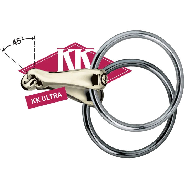 Das KK Ultra D-Ring Gebiss zeichnet sich durch sein anatomisch geformtes Mundstück aus, dessen Mittelstück um 45° nach vorne geneigt ist. Diese innovative Form ermöglicht eine präzise und sanfte Einwirkung, die das gesamte Pferdemaul, einschließlich der Zunge, schont.