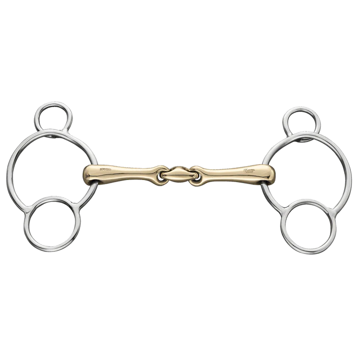 Die Sprenger KK Ultra Universal bietet dank ihres anatomisch angepassten, doppelt gebrochenen Mundstücks und des um 45° nach vorne geneigten Mittelstücks optimale Kontrolle bei anspruchsvollen Aufgaben. Sie eignet sich besonders für Pferde, die sich schwer regulieren lassen oder sich den Hilfen entziehen.