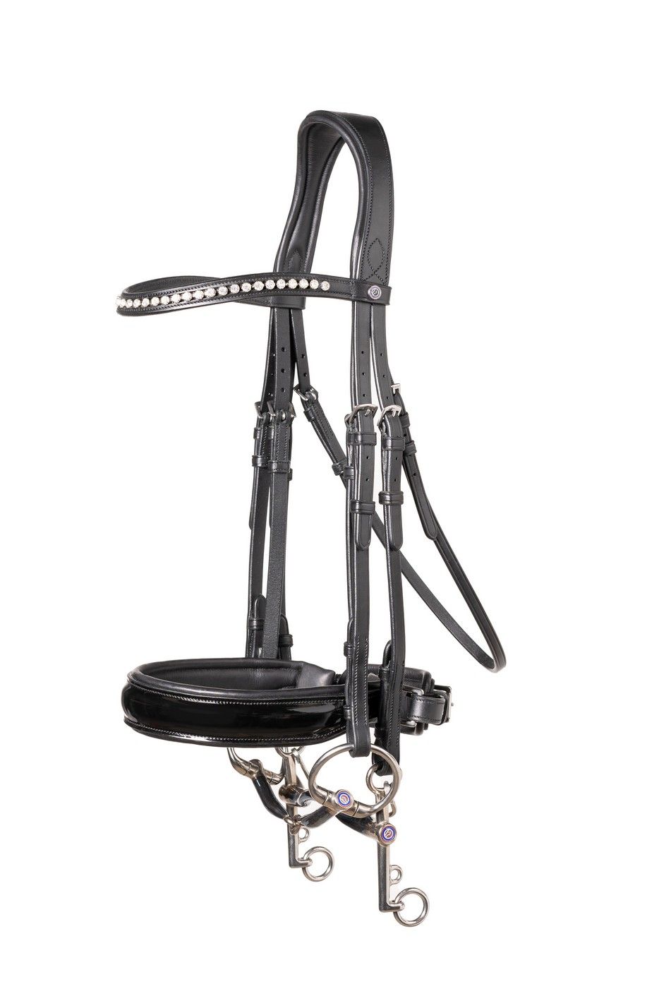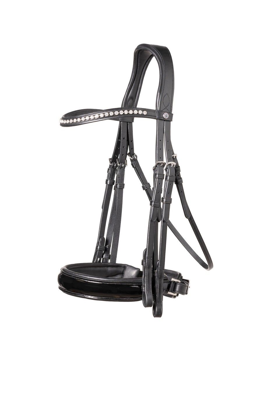 - Stirnriemen mit Stellux™-Kristallen: Eingefasste Kristalle, die ein Herausfallen verhindern und der Kandare eine stilvolle Note verleihen.