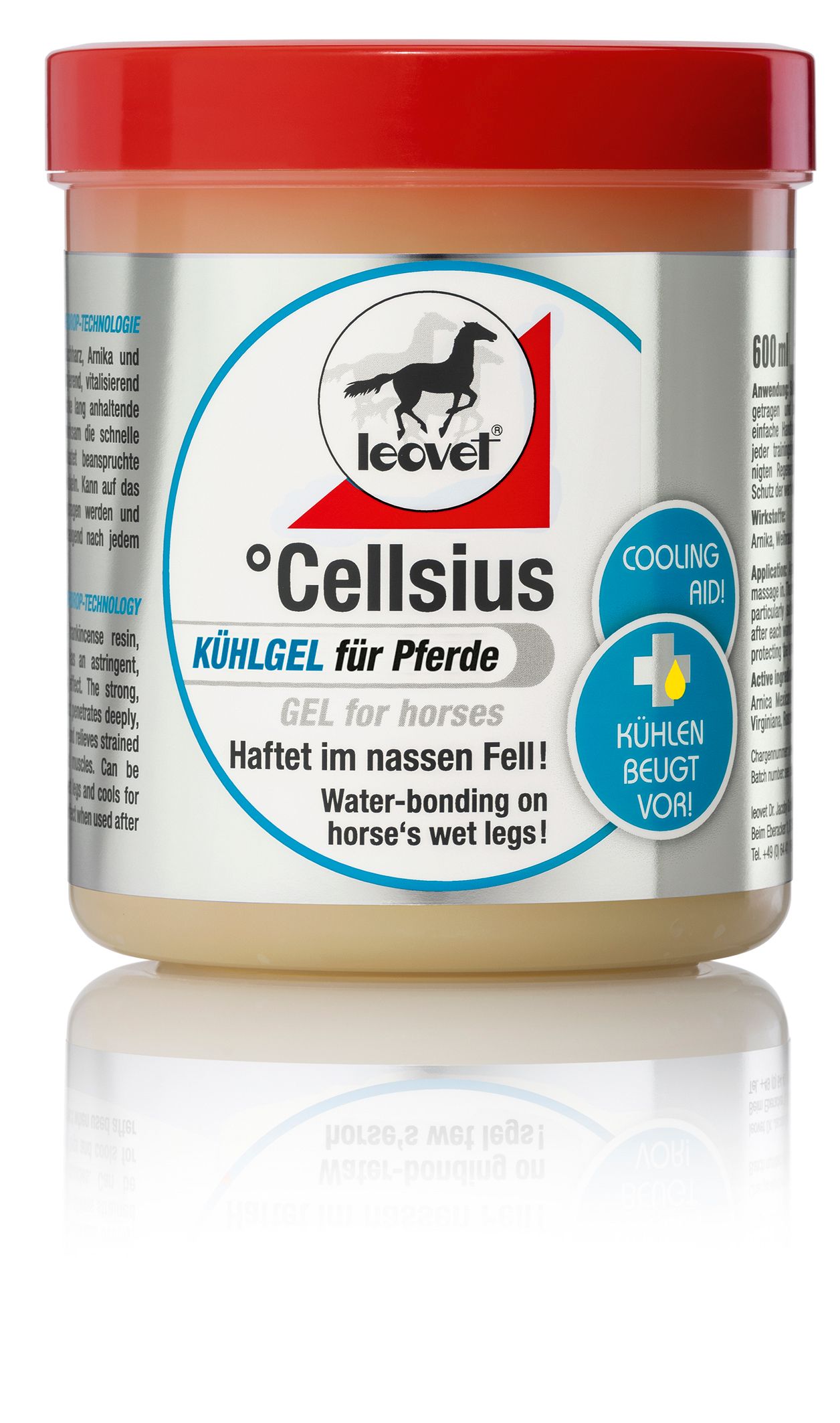 Das Cellsius Kühlgel ist ein innovatives Pflegeprodukt zur Unterstützung der Regeneration nach Belastung. Dank der WATERDROP-TECHNOLOGIE haftet es wasserhaftend am nassen Pferdebein, speichert die durch das Abspritzen erreichte Kühlung und wirkt wie eine natürliche Kühlmanschette. Die langanhaltende Kühlung dringt tief in das Gewebe ein, fördert die Regeneration und entlastet beanspruchte Bänder, Sehnen und Muskeln. Die natürlichen ätherischen Öle wie Pfefferminzöl, Eukalyptusöl, Rosmarinöl und Latschenkiefernöl sorgen zusätzlich für eine wohltuende, muskelentspannende und vitalisierende Wirkung.