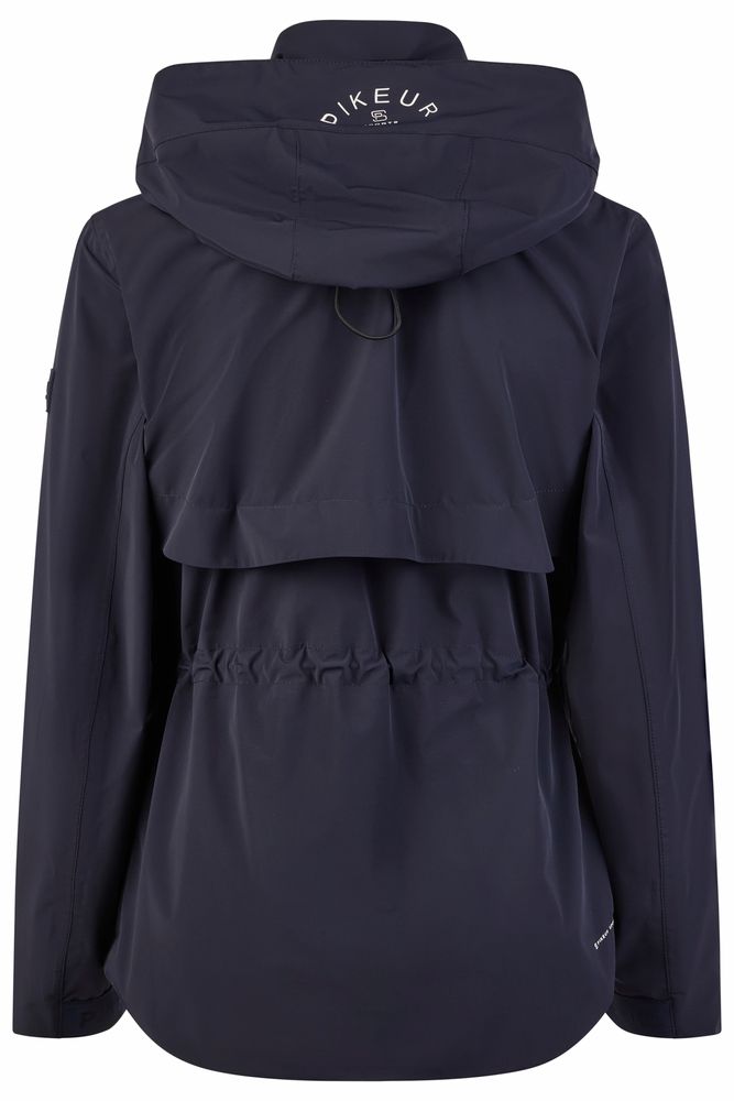 Zusätzliche praktische Details wie der verlängerte, runde Saumabschluss am Rücken, wasserdichte Reißverschlüsse & handrückenbedeckende Ärmel mit integriertem Gummiband & Pikeur-Label machen die Jacke besonders funktional.