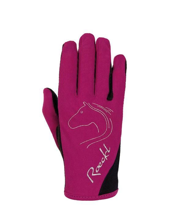 Stilisiertes Pferd und Roeckl-Schriftzug in Glitzerdruck machen die Handschuhe zu einem echten Hingucker.
