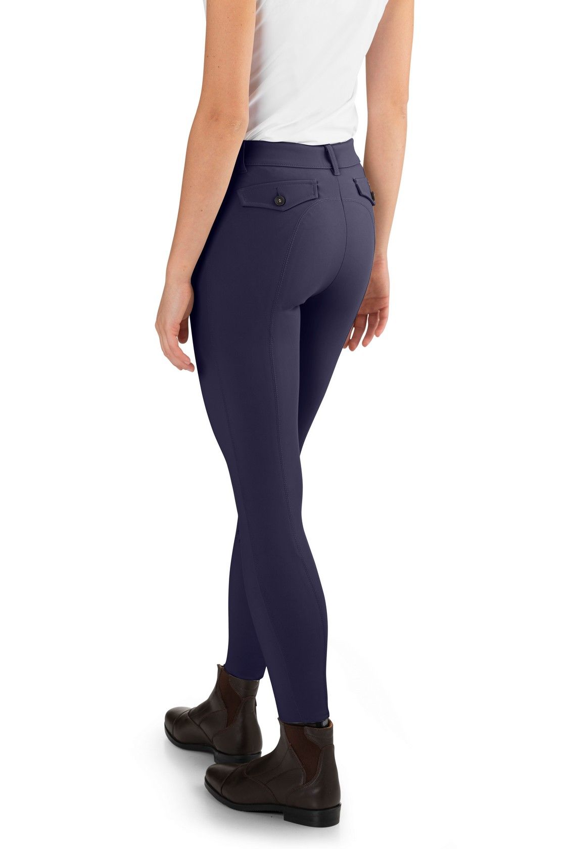Die Ego7 Reithose Damen Jumping PT Breeches ist eine funktionale Damenreithose von Ego7, die durch ihr innovatives Design hervorsticht. Diese Reithose bietet dank des speziellen Knie-Grips und des Grips auf der Innenseite der Hosenbeine besonderen Halt und Haftbarkeit im Sattel. Am Hosenbund ist extra keine Naht angebracht, um Druckstellen zu verhindern. Das Stretch-Material ermöglicht ein einfaches und angenehmes An- und Ausziehen der Reithose sowie eine optimale Passform. Die Materialzusammensetzung sorgt dafür, dass die Reithose nicht zerknittert, die ursprüngliche Passform immer beibehalten wird und der Stoff etwas fester ist. Zudem ist die Reithose blickdicht, atmungsaktiv und transportiert entstehende Feuchtigkeit nach außen. Sie besticht durch ihre schlichte und elegante Optik, was sie sehr gut kombinierbar macht und zu einem echten Blickfang werden lässt.