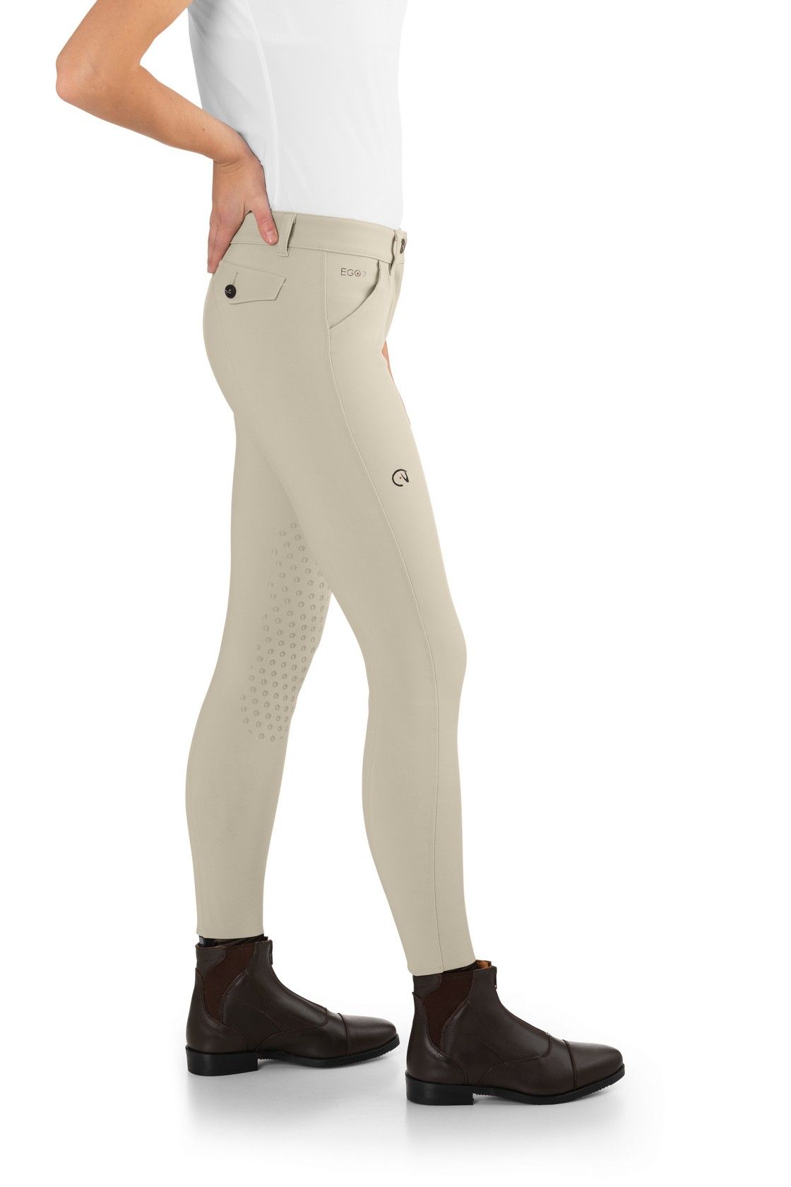 Die Ego7 Reithose Damen Jumping PT Breeches ist eine funktionale Damenreithose von Ego7, die durch ihr innovatives Design hervorsticht. Diese Reithose bietet dank des speziellen Knie-Grips und des Grips auf der Innenseite der Hosenbeine besonderen Halt und Haftbarkeit im Sattel. Am Hosenbund ist extra keine Naht angebracht, um Druckstellen zu verhindern. Das Stretch-Material ermöglicht ein einfaches und angenehmes An- und Ausziehen der Reithose sowie eine optimale Passform. Die Materialzusammensetzung sorgt dafür, dass die Reithose nicht zerknittert, die ursprüngliche Passform immer beibehalten wird und der Stoff etwas fester ist. Zudem ist die Reithose blickdicht, atmungsaktiv und transportiert entstehende Feuchtigkeit nach außen. Sie besticht durch ihre schlichte und elegante Optik, was sie sehr gut kombinierbar macht und zu einem echten Blickfang werden lässt.