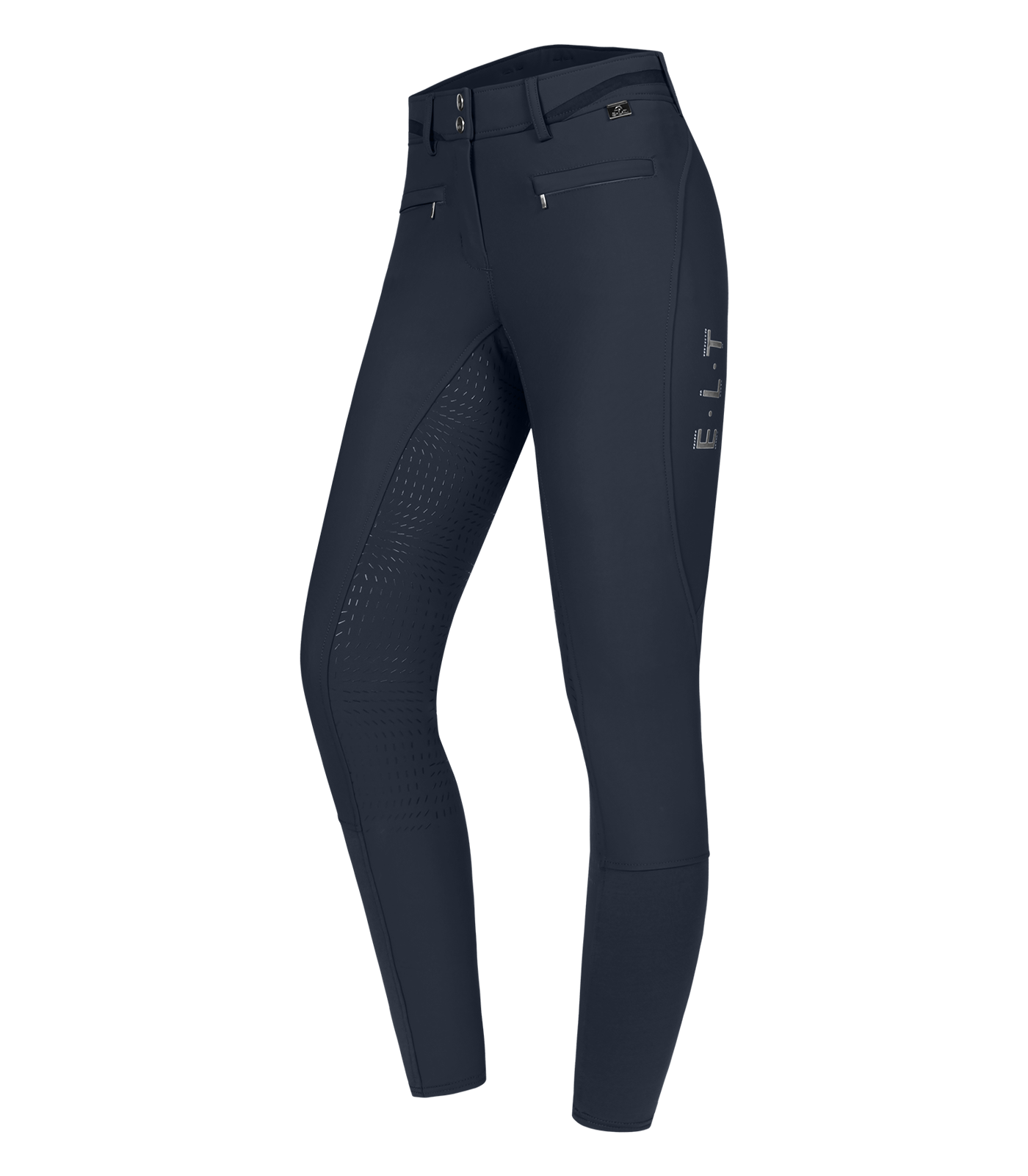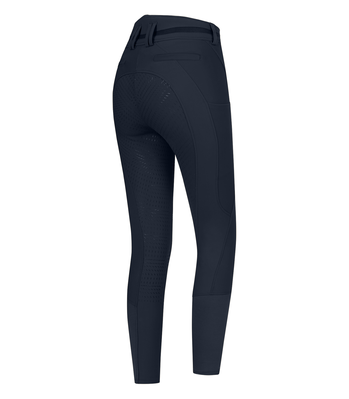 Die Reithose Maja Glam Curved High Waist bietet dir sowohl funktionale Eigenschaften als auch ein stilvolles Design. Mit ihrem Silikon-Vollbesatz und den unterschiedlichen Grip-Zonen sorgt sie für einen sicheren Halt im Sattel. Der hohe Bund in Kombination mit einem figurformenden Schnitt bietet dir eine perfekte Passform und betont deine Silhouette. Der kompressionseffekte und die bi-elastische Stoffqualität sorgen für maximalen Komfort und Bewegungsfreiheit.