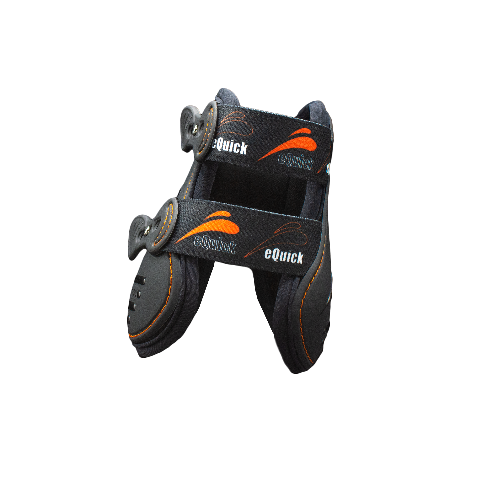 Die eQuick eWonder Short Streichkappen überzeugen durch ihre innovative Doppelschalenkonstruktion, die das Pferdebein zuverlässig beim Sprung schützt und gleichzeitig die Hinterbeinaktivität fördert. Die weiche Neoprenpolsterung sorgt für maximalen Tragekomfort, vermeidet Druckstellen und beugt Reibung effektiv vor.