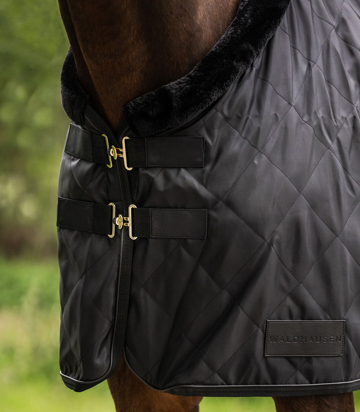 Die Transportdecke EXCLUSIVE bietet Ihrem Pferd höchsten Komfort und Schutz an kalten Tagen. Die hochwertige Decke ist mit künstlichem Kaninchenfell gefüttert, welches ideal die Körperwärme speichert und gleichzeitig sehr weich ist, um Scheuerstellen zu verhindern. Der künstliche Fellkragen rundet das edle Design der Decke ab und sorgt für zusätzlichen Komfort im Halsbereich.