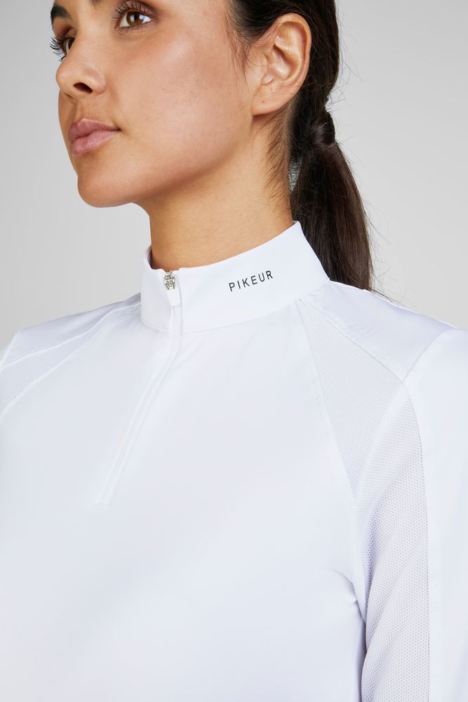 Der Reißverschluss am Kragen sorgt für ein einfaches Handling & individuelle Belüftung, während dezente Pikeur-Prints am Kragen, im Schulterbereich & auf dem Rücken das sportliche Design abrunden.