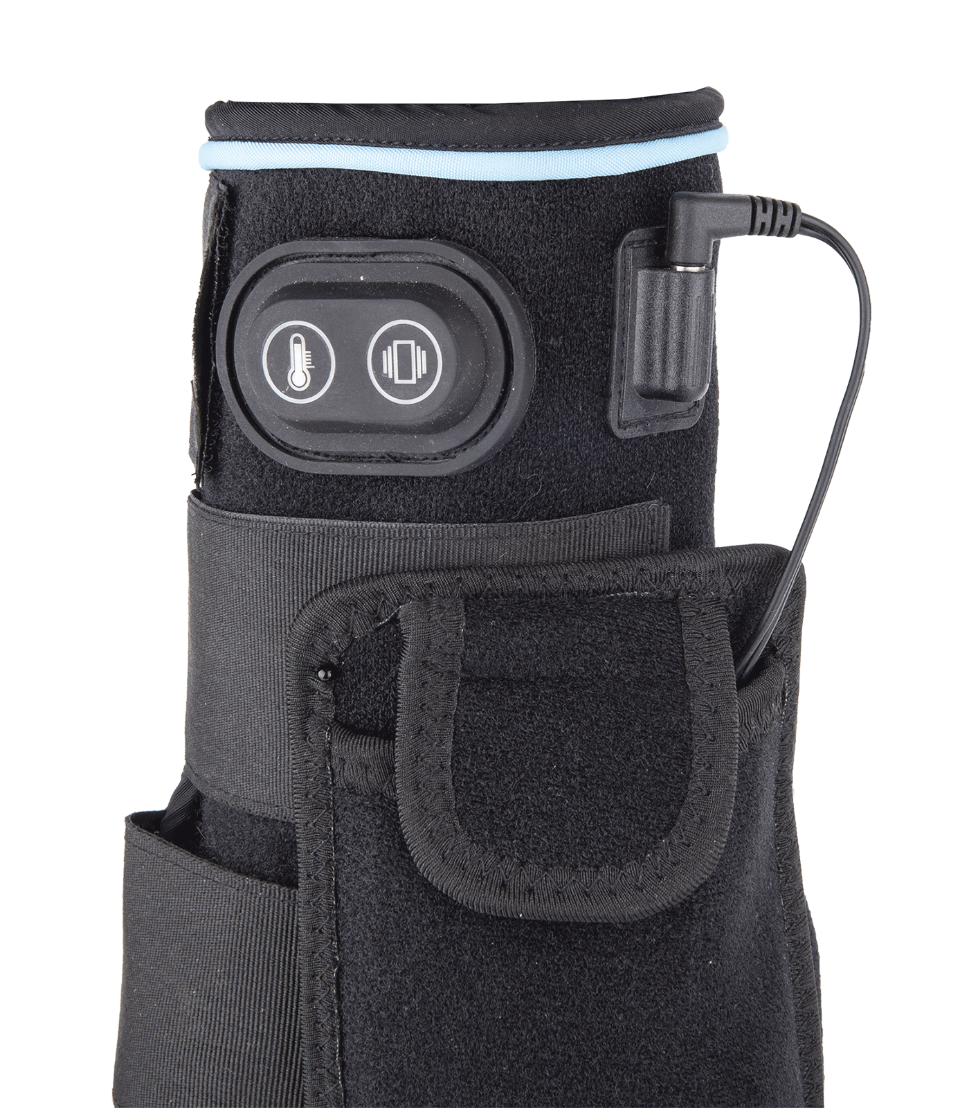 Die Gamasche bietet drei verschiedene Einstellmöglichkeiten für Vibration und Wärme, die auf die Bedürfnisse des Pferdes abgestimmt werden können.